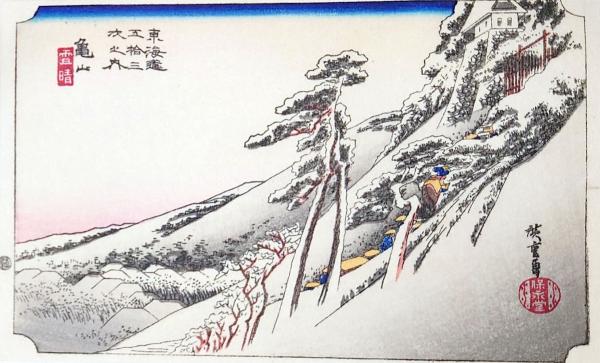 彩色木版画 ハガキサイズ 東海道五十三次 亀山宿 保永堂版 広重 複刻昭和年代〇和本古書古文書