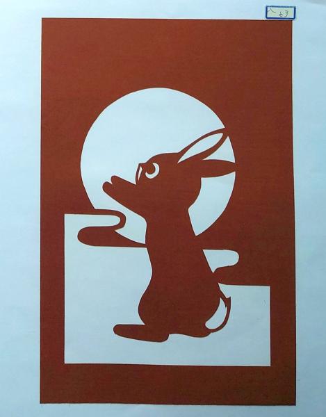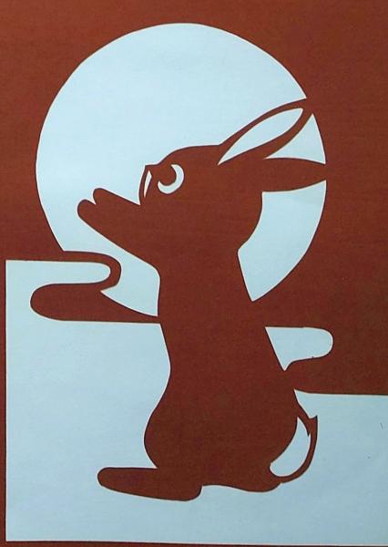 • 解説 D26020063〇伊勢型紙 手彫り うさぎと月 秋の風物詩 アート 伝統和紙工芸 貼り絵 切り絵 昭和レトロ インテリア〇和本古書古文書