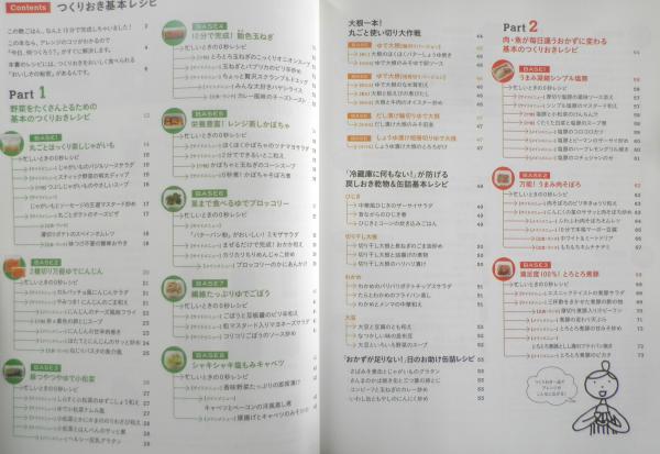 Part1/野菜をたくさんとるための基本のつくりおきレシピ Part2/肉・魚が毎日違うおかずに変わる基本のつくりおきレシピ Part3/定番おかずががらりと変身する基本のつくりおきレシピ Part4/「つくりおき」を活用すると料理はもっと楽しくなる! 他