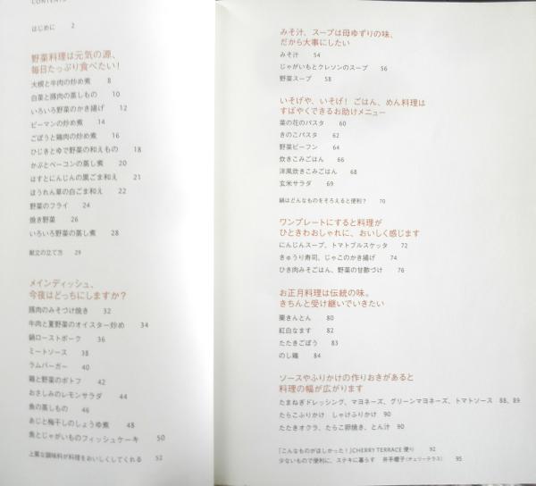 野菜料理は元気の源、毎日たっぷり食べたい! メインディッシュ、今夜はどっちにしますか? みそ汁、スープは母ゆずりの味、だから大事にしたい いそげや、いそげ!ごはん、めん料理はすばやくできるお助けメニュー ワンプレートにすると料理がひときわおしゃれに、おいしく感じます お正月料理は伝統の味。きちんと受け継いでいきたい ソースやふりかけの作りおきがあると料理の幅が広がります