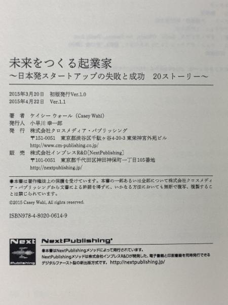 未来をつくる起業家 ~日本発スタートアップの失敗と成功 20ストーリー~ (NextPublishing) クロスメディア・パブリッシング ケイシー ウォール(Casey Wahl)