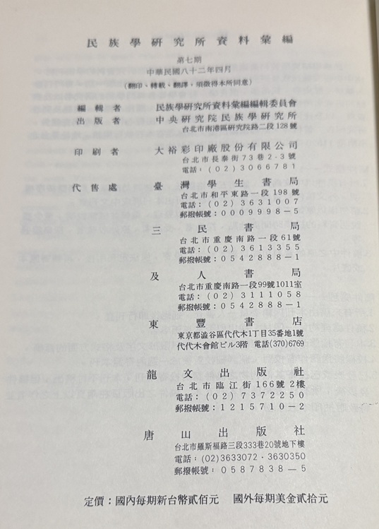 • 刊行年 中華民国82年(1993年)