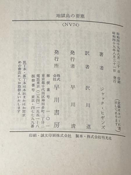 地獄島の要塞 (ハヤカワ文庫 NV 74) 早川書房 ジャック ヒギンズ