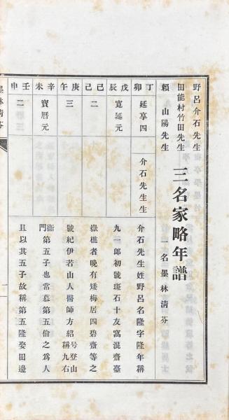 三名家略年譜 一名墨林清芬(野呂介石、田野村竹田、頼山陽)