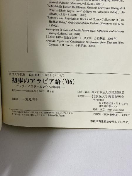 初歩のアラビア語 ’06 アラブ・イスラーム文化への招待 放送大学教育振興会 鷲見 朗子
