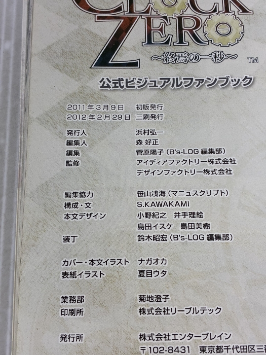 【※イタミ有り】CLOCK ZERO ~終焉の一秒~ 公式ビジュアルファンブック (B's-LOG COLLECTION) エンターブレイン B's-LOG編集部