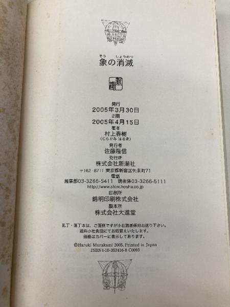 「象の消滅」 短篇選集 1980-1991 新潮社 村上 春樹