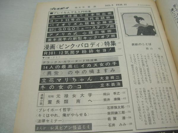 週刊プレイボーイ NO.5 1969年02月11日号 ビュイック・リビエラ ジェーンフォンダ・巻頭グラビア 立花マリ 青井ジャンヌ 橘ますみ ピーターバッシュ撮影・14人のイカス女 レスビアン怪盗ミミ/石井みみ