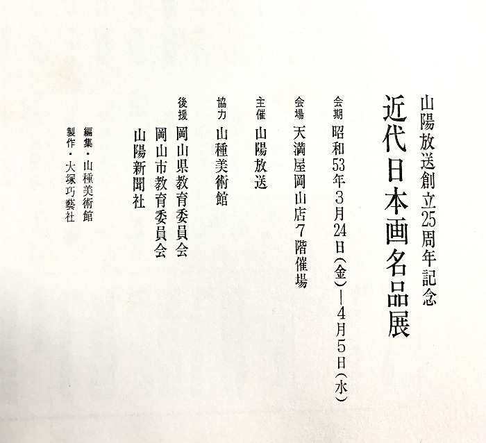 【図録】山陽放送創立25周年記念[近代日本画名品展]山陽放送 昭和53年 天満屋岡山店