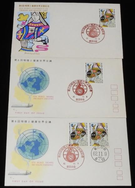 【初日カバー】第6回 喫煙と健康世界会議記念 3種セット 東京中央 62.11.9