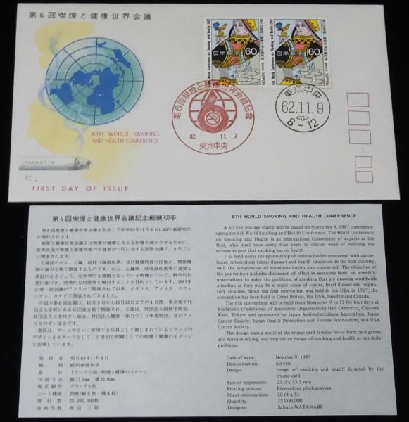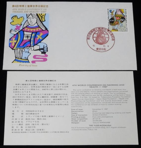 • 解説 【初日カバー】第6回 喫煙と健康世界会議記念 3種セット 昭和62年