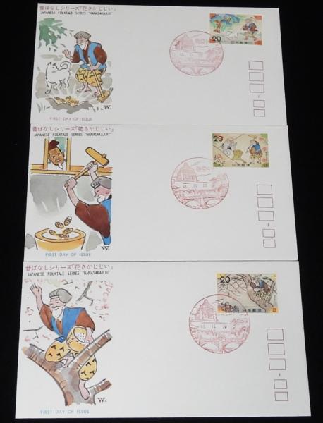【初日カバー】昔ばなしシリーズ 花さかじじい 全3種セット 昭和48年/杉本健吉