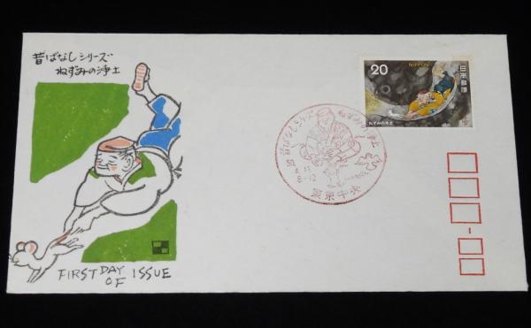 • 解説 【初日カバー】昔ばなしシリーズ ねずみの浄土 全3種セット 全日本郵便切手普及協会 昭和50年