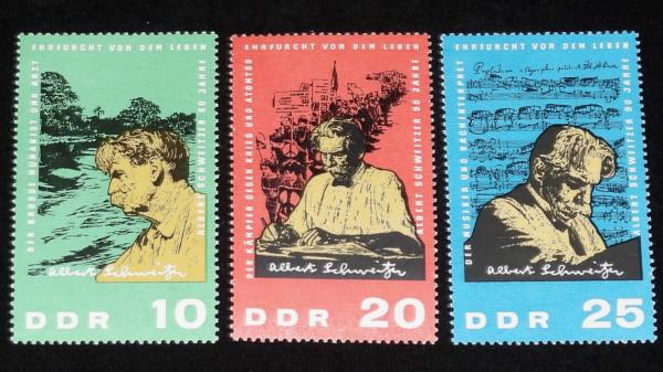 【切手】東ドイツ切手 シュバイツァー生誕90年 3種セット 1965年