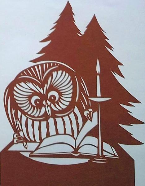 • 解説 D26020083〇伊勢型紙 手彫り フクロウ ミミズク 本を読む アート 伝統和紙工芸 貼り絵 切り絵 昭和レトロ インテリア〇和本古書古文書