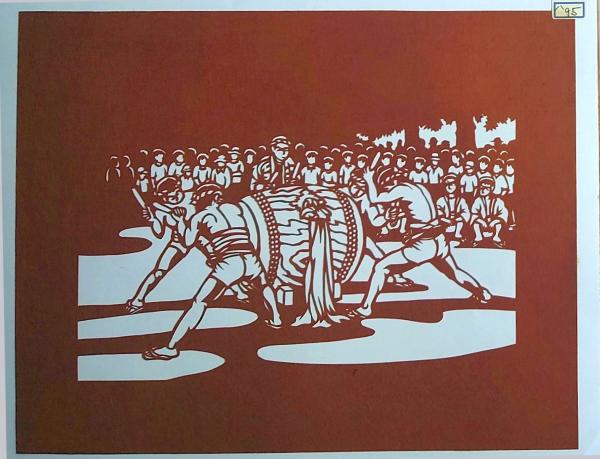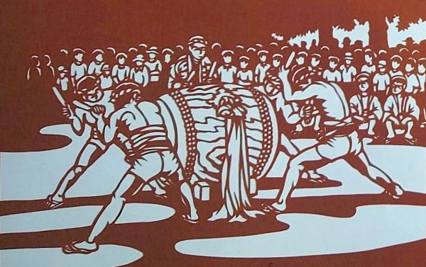 D26020095〇伊勢型紙 手彫り 太鼓 日本の祭り アート 伝統和紙工芸 貼り絵 切り絵 昭和レトロ インテリア〇和本古書古文書