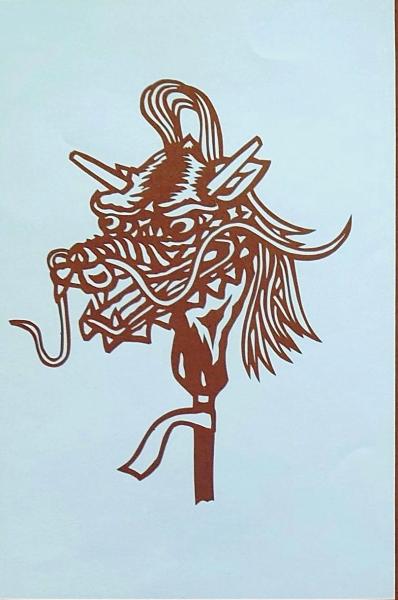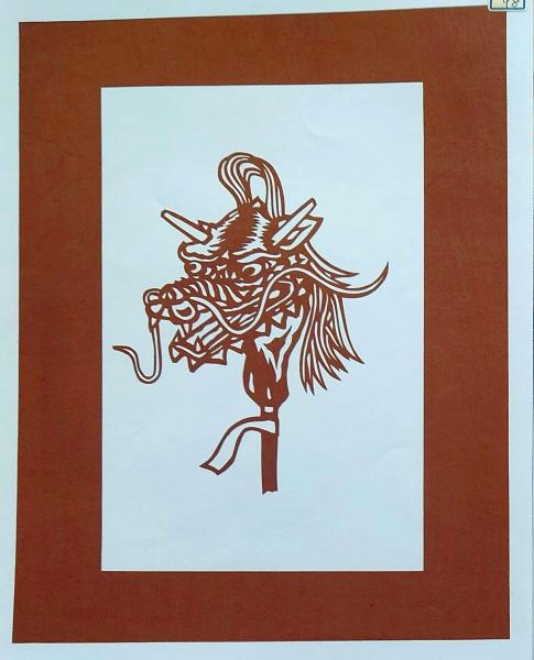 • 解説 D26020098〇伊勢型紙 手彫り 獅子頭 龍頭 首人形 アート 伝統和紙工芸 貼り絵 切り絵 昭和レトロ インテリア〇和本古書古文書