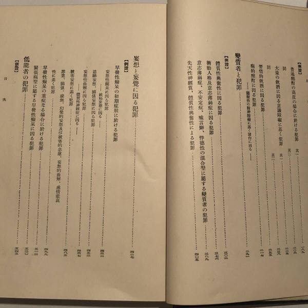 犯罪心理研究ー法医学的精神病学ー(菊地甚一・昭和8年)「意識の朦朧状態中の犯罪」「妄想と妄覚に因る犯罪」「低脳者の犯罪」他