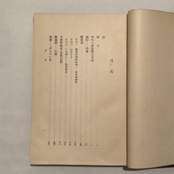 病的殺人の研究(菊地甚一・昭和6年)「少年の強盗殺人未遂」「変質者」「早発性痴呆」「妄想ーぱらのいあ」「鬱憂病」「親子心中」他