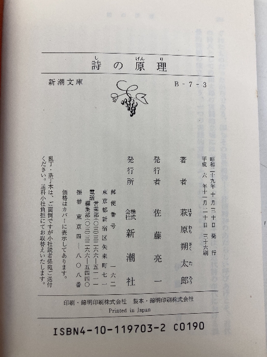 【※カバー無し】詩の原理 (新潮文庫 B 7-3) 新潮社 萩原 朔太郎