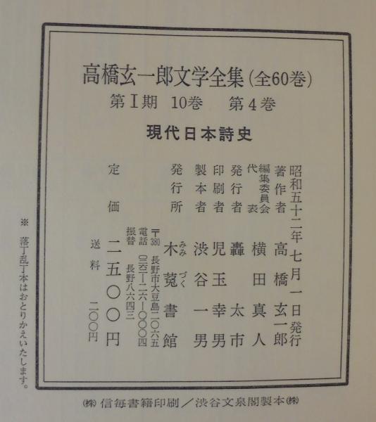 現代日本詩史 高橋玄一郎文学全集第4巻