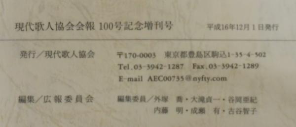 現代歌人協会会報 100号記念増刊号