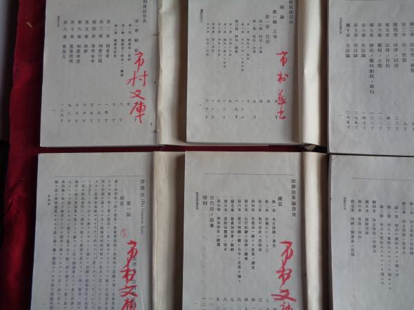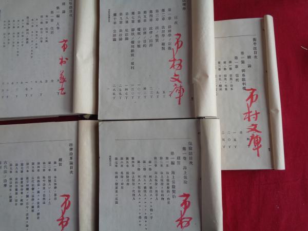 法律沿革論(増島六一郎講義 明治20年前後?)他、明治法律講義書7冊一括 衡平法(戸水 寛人)保険法 条件論(馬場原治)習慣法他(宮岡恒次郎)分析法理(塩谷恒太郎)破産法 行政法(中橋徳五郎)国際私法 羅馬法(伊藤悌治) 全冊に「市村 (瓚次郎)文庫?」旧蔵朱署名