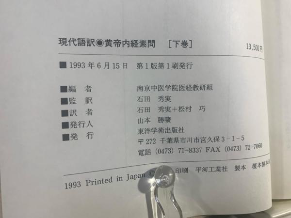 黄帝内経素問 : 現代語訳 上中下3冊