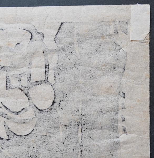 経年による小シミ、全体に小ジワ、裏面の上角に紙片貼り付けが有ります。
