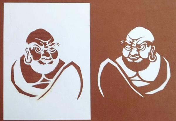 • 解説 D26020105〇伊勢型紙 手彫り 達磨 ダルマ 対象絵 アート 伝統和紙工芸 貼り絵 切り絵 昭和レトロ インテリア〇和本古書古文書