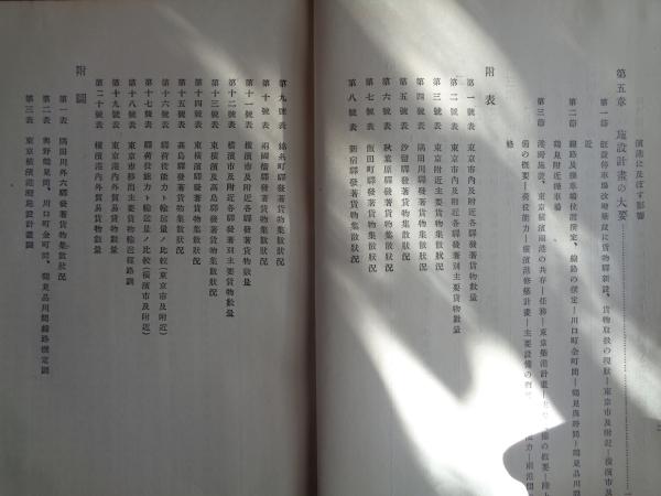 東京横浜附近交通調査会報告書(帝国鉄道協会・土木学会、大正14年)陸上貨物運輸、陸上輸送能力、海上貨物運輸、東京港、横浜港、施設計画の大要、別表多数、付図3枚