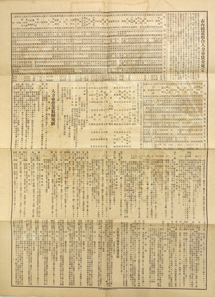 第五回内国勧業博覧会場之図、市内特置組合人力車賃金規程、人力車営業取締規則、他。