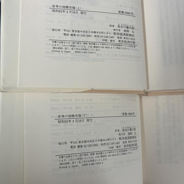 世界の投機市場 その仕組みと動かす力 上下セット 揃い