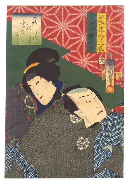 • 解説 Woodblock Print大判1枚摺良 トリミング 右端傷ミ補修 左から となみ/市川団之助 源蔵/坂東彦三郎