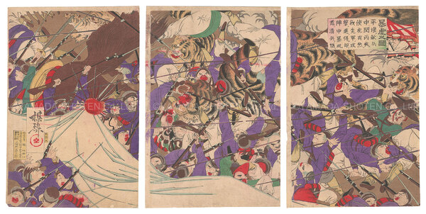• 解説 Woodblock Print大判3枚続摺良 汚レ 傷ミ 色滲ミ 折レ 端部剥がし跡