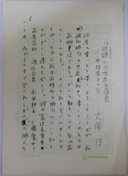 • 解説 「『非時(ときじく』」の世界の消息-中村苑子の句」200字詰18枚完、新潮社用箋