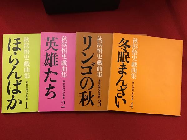 秋浜悟史戯曲集 東北の四つの季節 全4冊(1「ほらんばか」/2「英雄たち」/3「リンゴの秋」/4「冬眠まんざい」)セット ※1巻の見返しにペン識語署名入り、正誤表付き 4作のうち「英雄たち」「リンゴの秋」の上演のあった「劇団三十人会公演16 喜劇・秋浜悟史」のチラシ2枚つき
