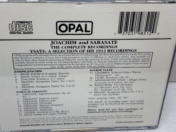 CD  OPAL盤 ヨアヒム サラサーテ イザイ 録音集  輸入盤