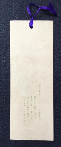• 解説 150x55mm 裏面~向井喜代江『電話あそび』誰かしら 誰かしら 電話のお声は 誰かしら 可愛いいいお声は 誰かしら お目のまるい みよちゃんね