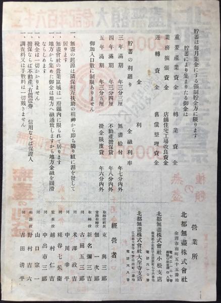 〈チラシ〉北都無盡株式会社発行『紀元二千六百年記念大額無盡』