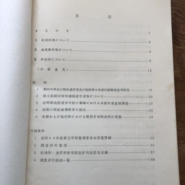 定時制・通信制課程における教育形態の調査研究について 報告(定時制・通信制調査研究会:都立学校整備委員会・昭和45年)
