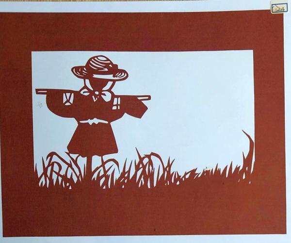 • 解説 D26020124〇伊勢型紙 手彫り カカシ 秋の風物詩 アート 伝統和紙工芸 貼り絵 切り絵 昭和レトロ インテリア〇和本古書古文書