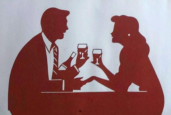 伊勢型紙 手彫り 若いカップル ワイン アート 伝統和紙工芸 貼り絵 切り絵 昭和レトロ インテリア〇和本古書古文書