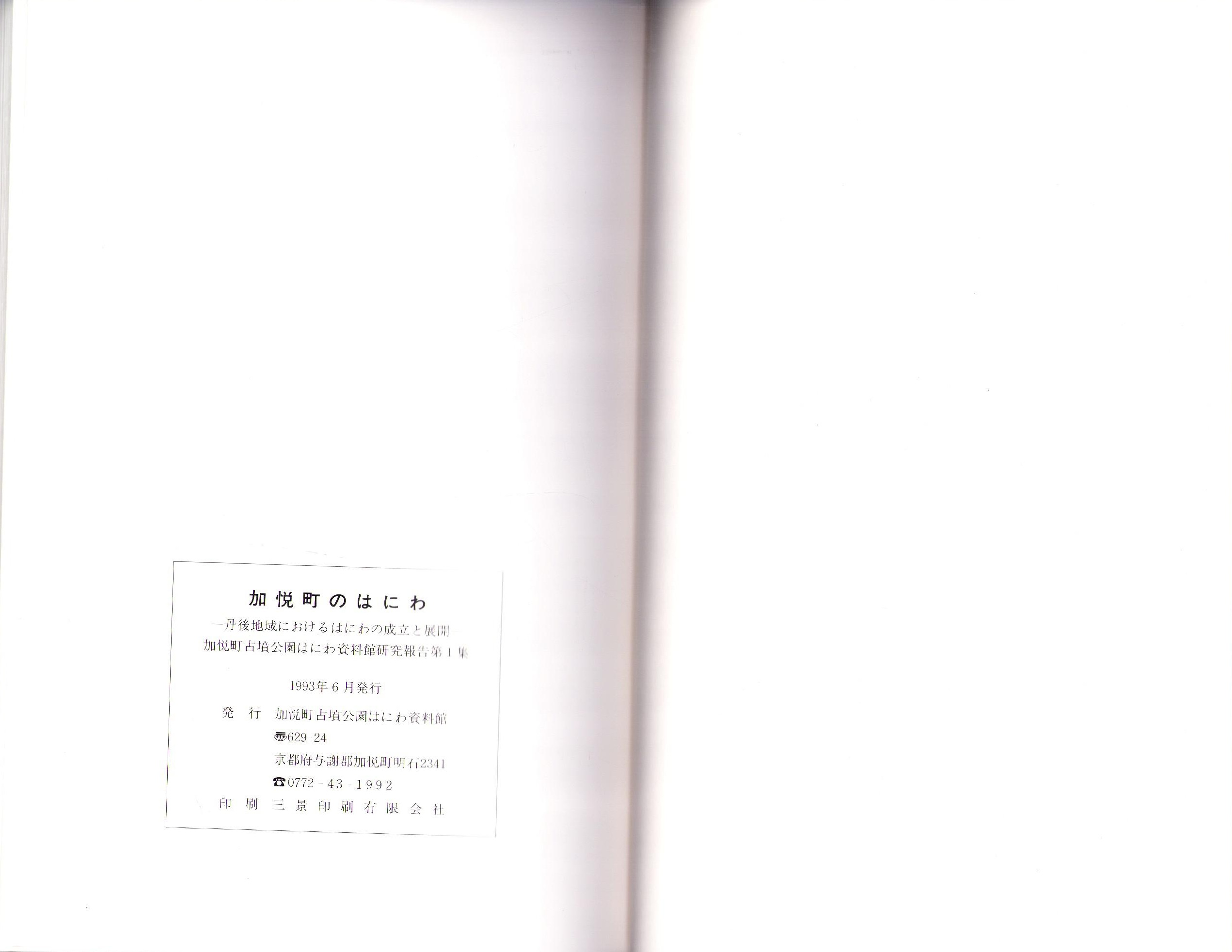 • 解説 美本、B5判、66頁、〈加悦町古墳公園はにわ資料館研究報告 第1集〉