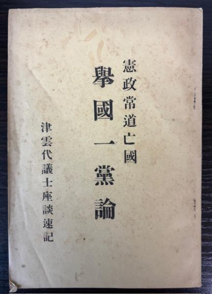 憲政常道亡国 挙国一党論 津雲代議士座談速記