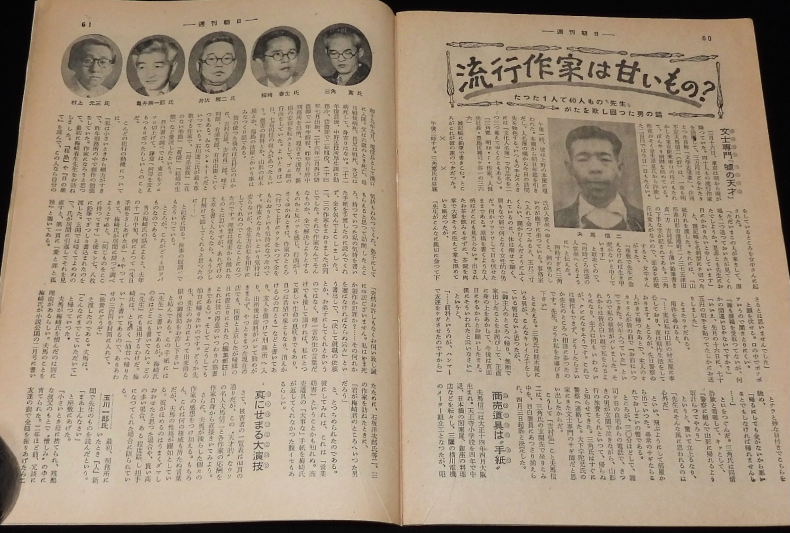 週刊朝日 昭和28年5/3号 妻を語る 白井義男/漫画家を切る/文士専門の嘘の天才