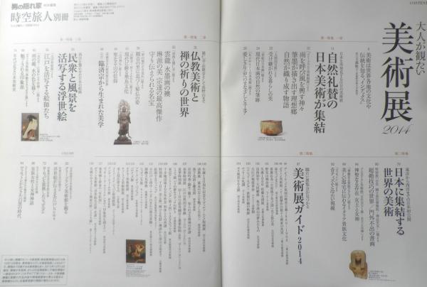 男の隠れ家特別編集/時空旅人別冊 日本・東洋から西洋美術まで・2014年開催全国50展美術展ガイド 第一特集一章/自然礼賛の日本美術が集結 二章/仏教美術と禅の祈りの世界 三章/民衆と風景を活写する浮世絵 第二特集/日本に集結する世界の美術 第三特集/美術展ガイド2014 他