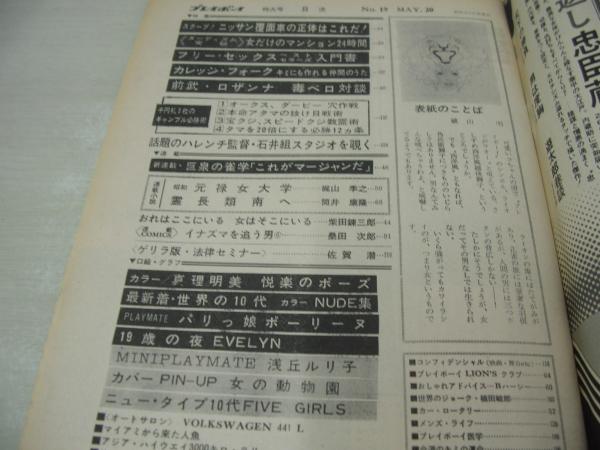 週刊プレイボーイ NO.19 1969年05月20日号 フォルクスワーゲン411L 真理明美・巻頭グラビア ビーバー 石井春海 久美かほり 里見陽子 柳本郁美 世界の10代NUDE集 ロザンナ・ボンボン(対談記事/前武対談) ポーリーヌ・巻中3折ピンナップ イナズマを追う男/桑田次郎 アメリカン・ウォーター・ショー 浅丘ルリ子