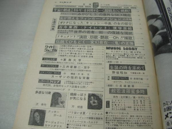 平凡パンチ NO.496 1974年02月11日号 池島ルリ子 表紙+グラビア 沢幸代 マージョリー・カマンダリス 芹明香 ミッシェル 絹かずみ エルトン・ジョン キャッシー中島(インタビュー記事)