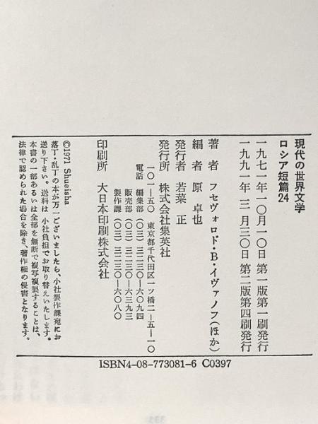 ロシア短篇24 (現代の世界文学) 集英社 フセヴォロド・В・イヴァノフ